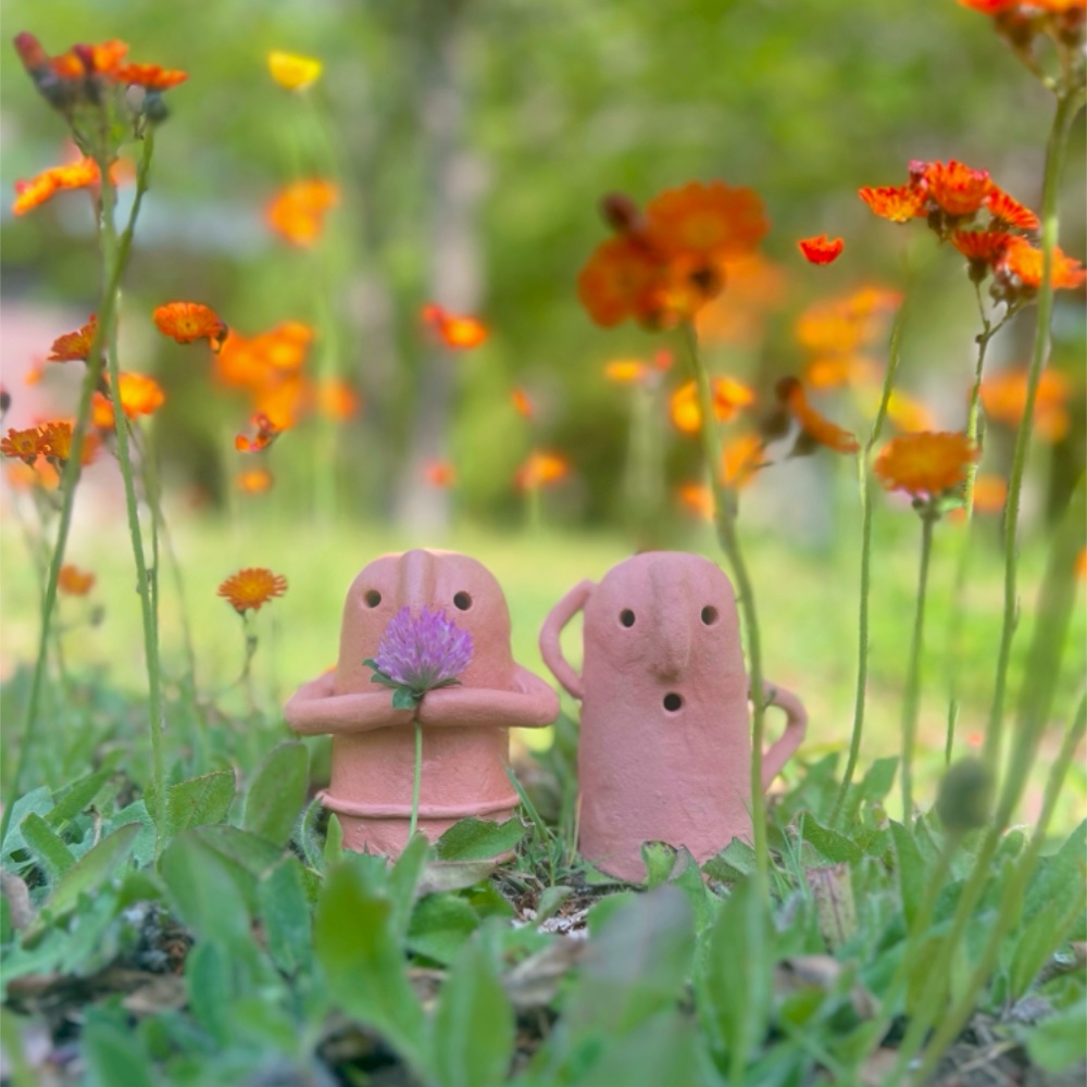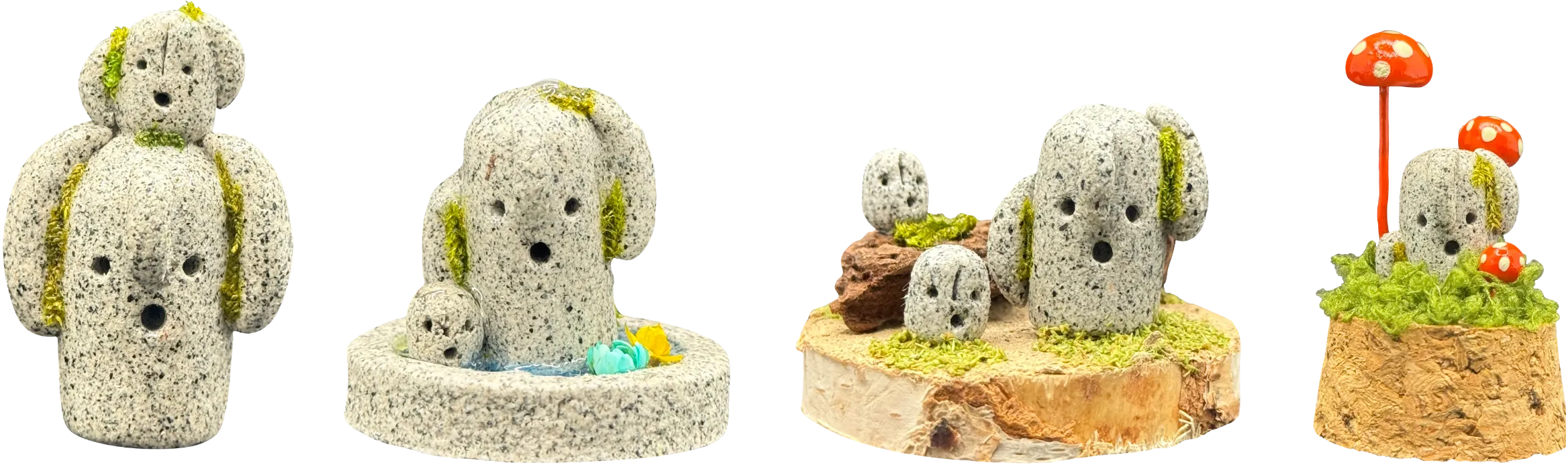 ストーンハニワは乾くと石のようになる粘土で作成しています。