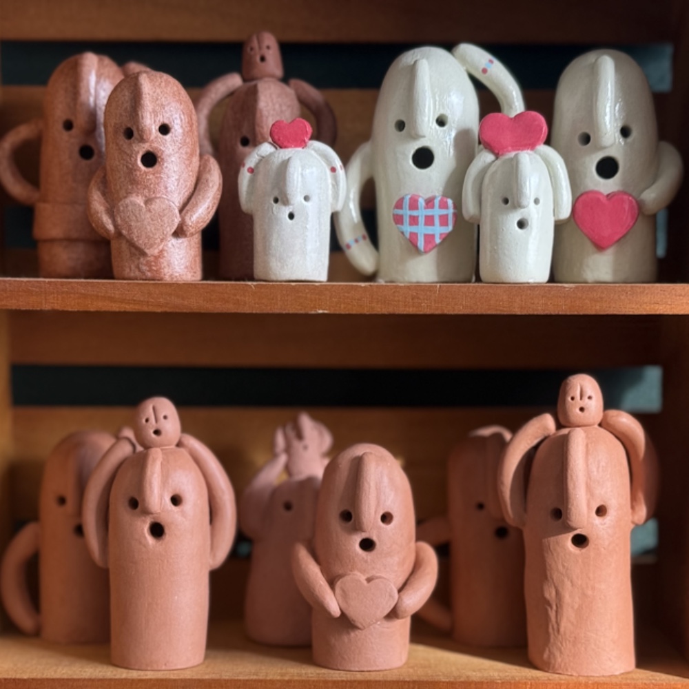 テラコッタ色の粘土を使用し、ニスで仕上げています。いろんなポーズのハニワがいます。