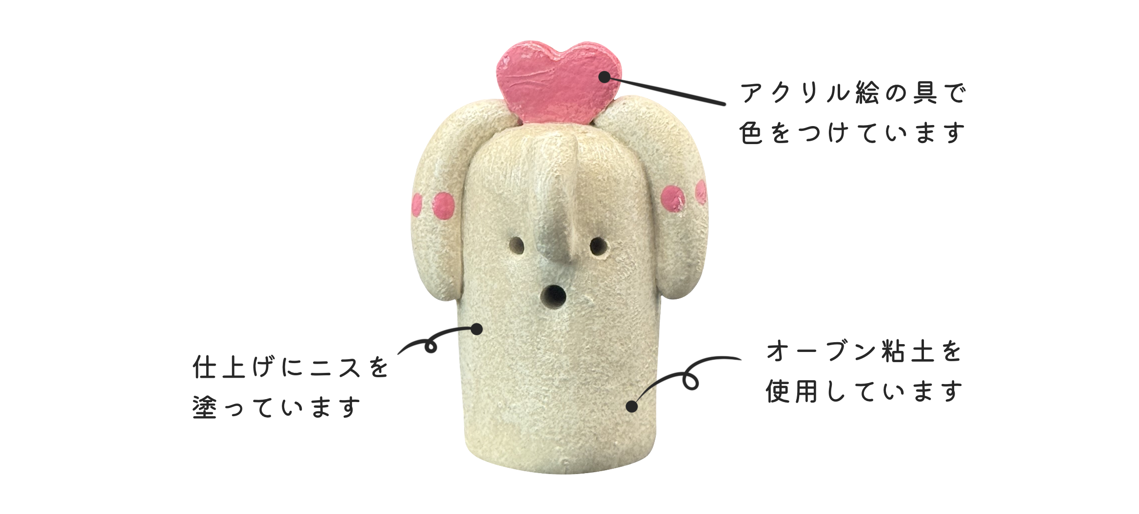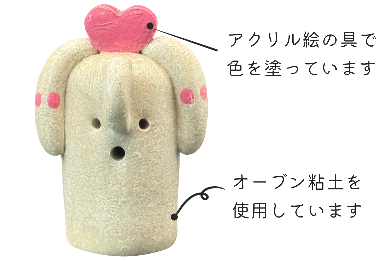 カラフルハニワはオーブン粘土や白い粘土を使用してアクリル絵の具で色をつけています。